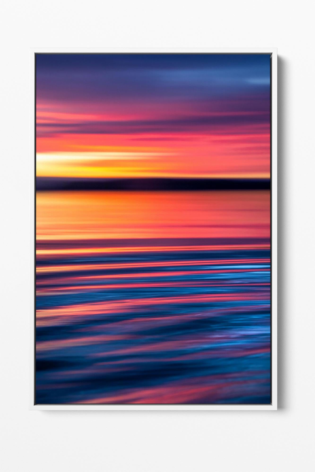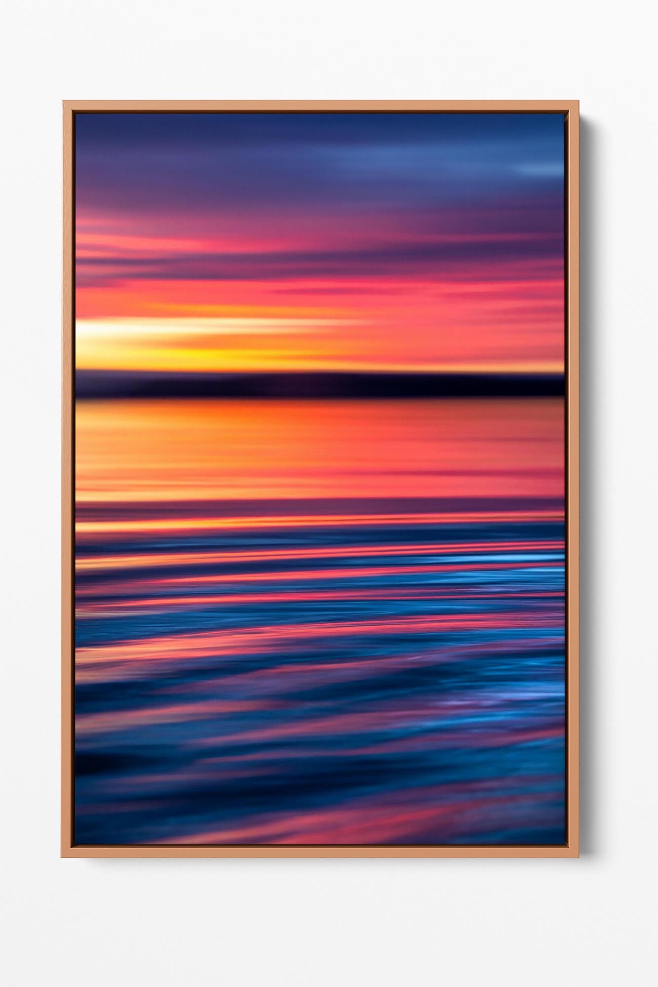 The fine art canvas come stretched around an internal timber frame however there is the option to add a float frame to the exterior of the fine art canvas. Float frames are available in white, black and Tasmanian oak and are a great way to add more depth and contrast to our fine art canvas range.
