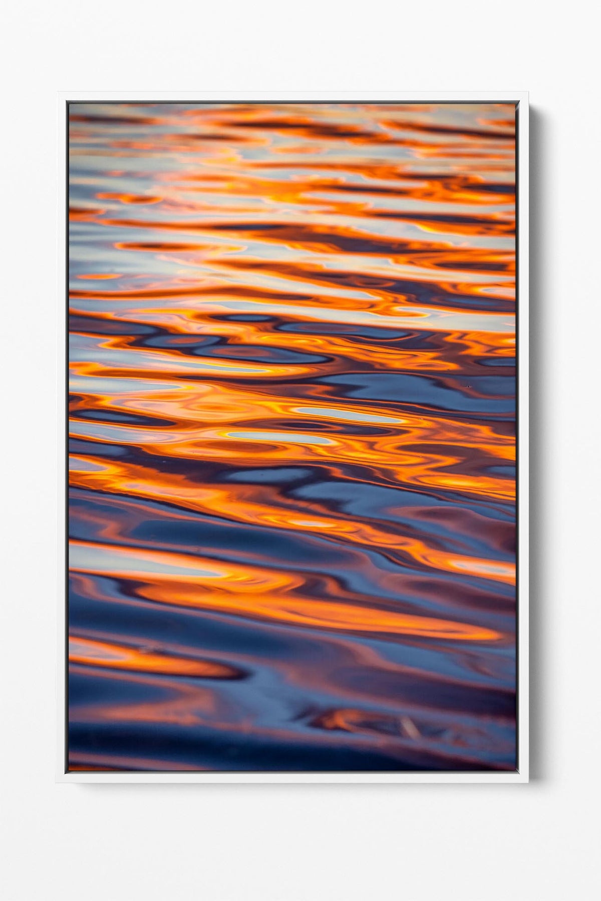 The fine art canvas come stretched around an internal timber frame however there is the option to add a float frame to the exterior of the fine art canvas. Float frames are available in white, black and Tasmanian oak and are a great way to add more depth and contrast to our fine art canvas range.