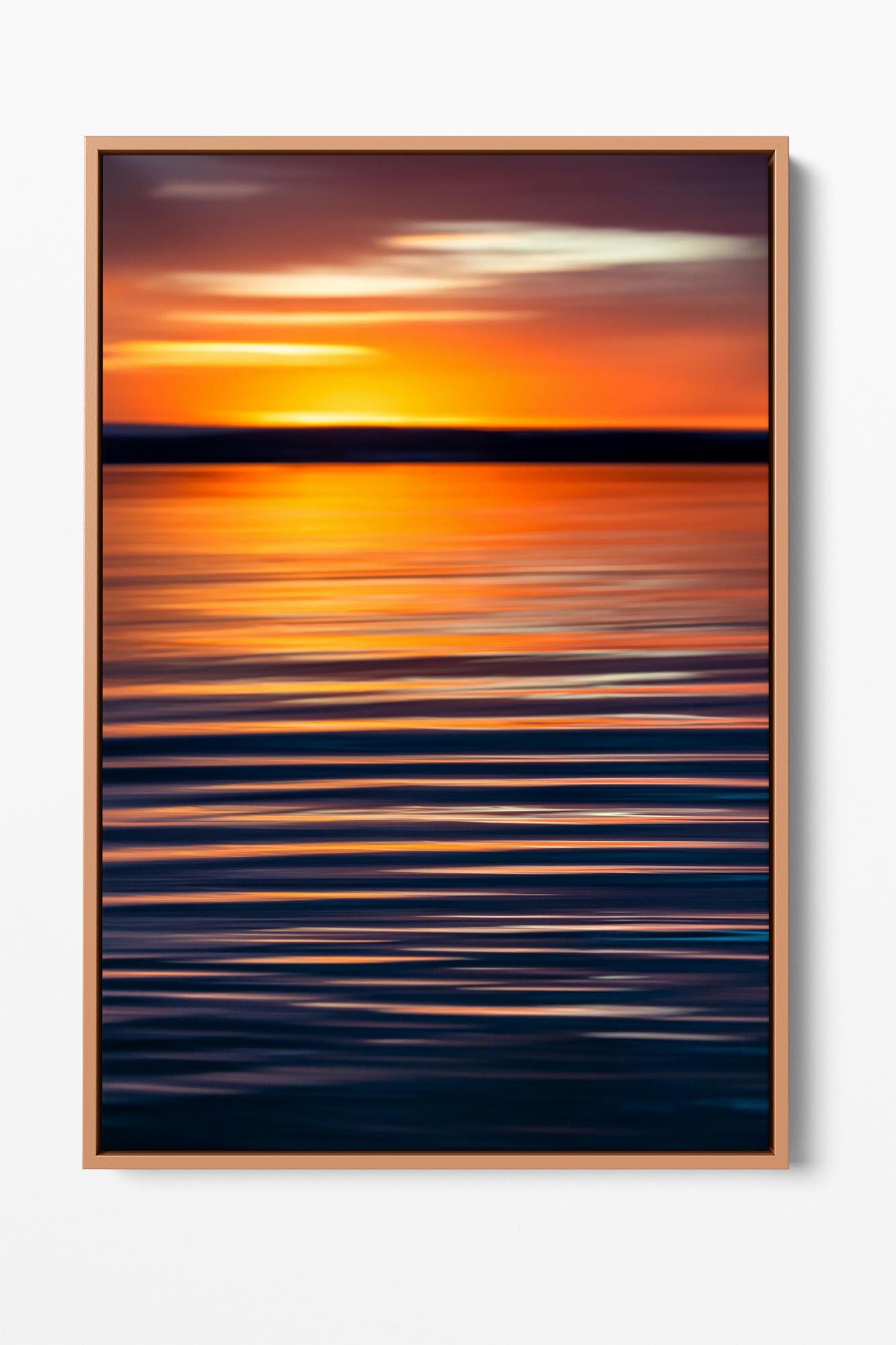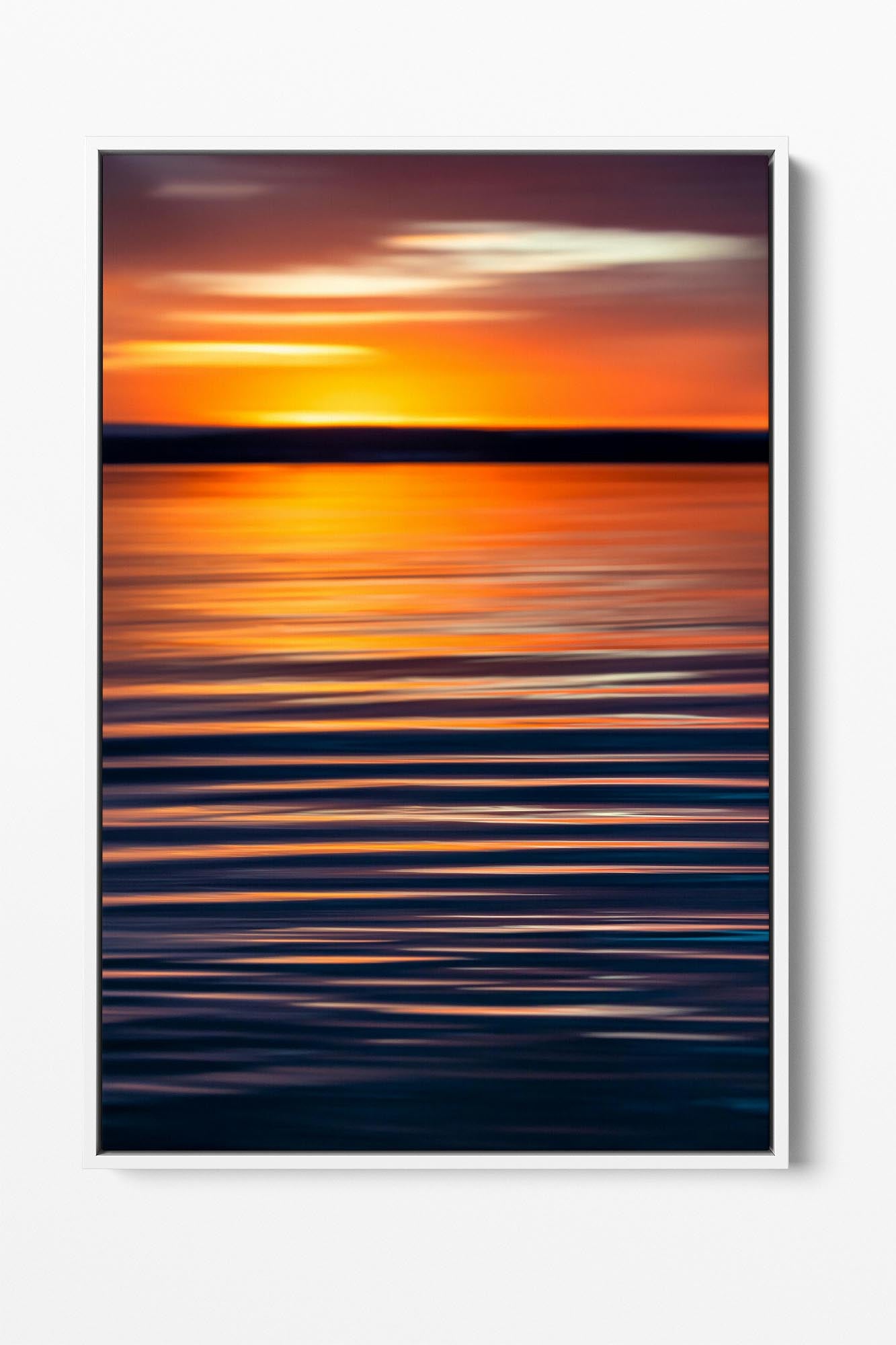 The fine art canvas come stretched around an internal timber frame however there is the option to add a float frame to the exterior of the fine art canvas. Float frames are available in white, black and Tasmanian oak and are a great way to add more depth and contrast to our fine art canvas range.
