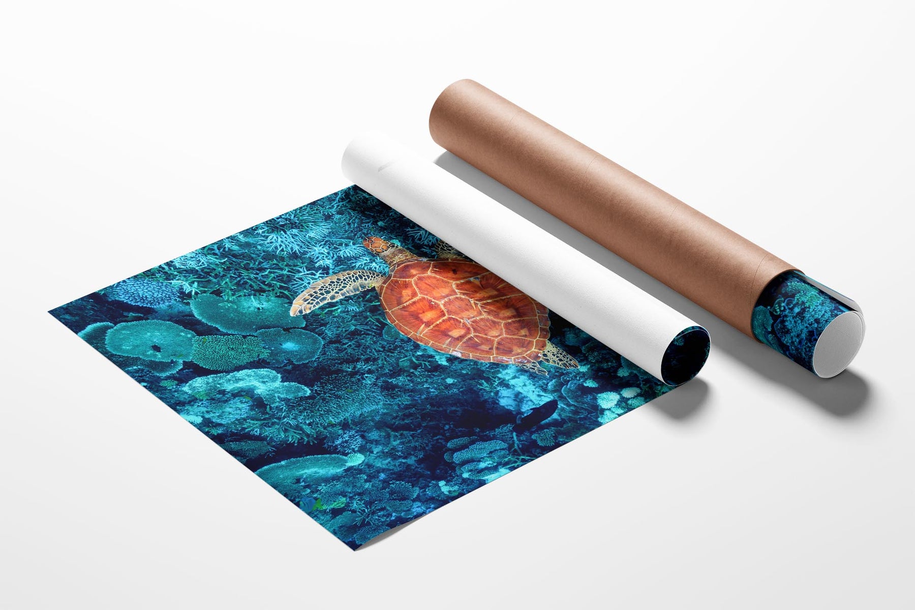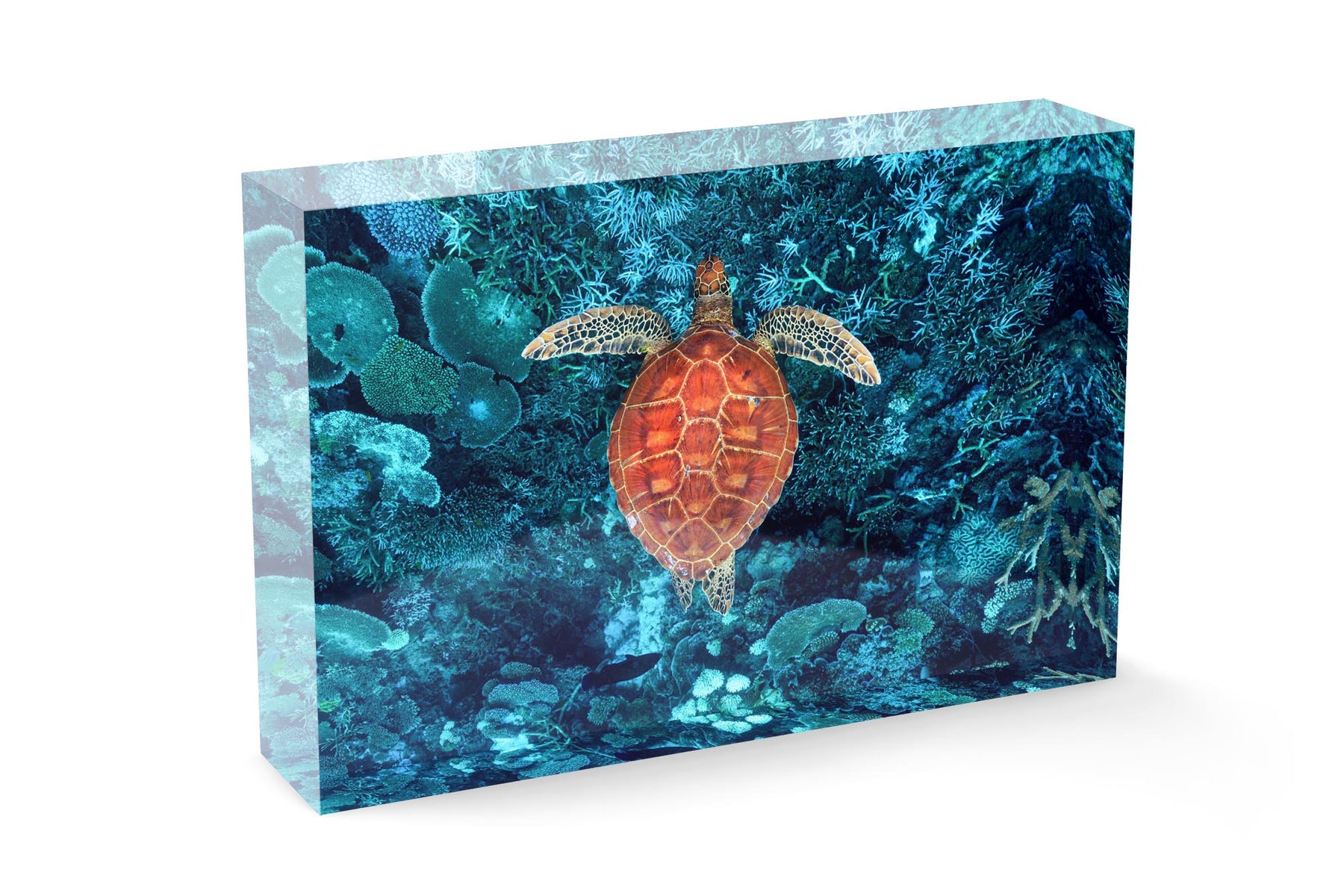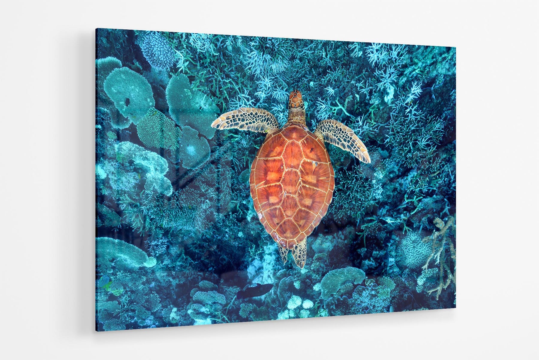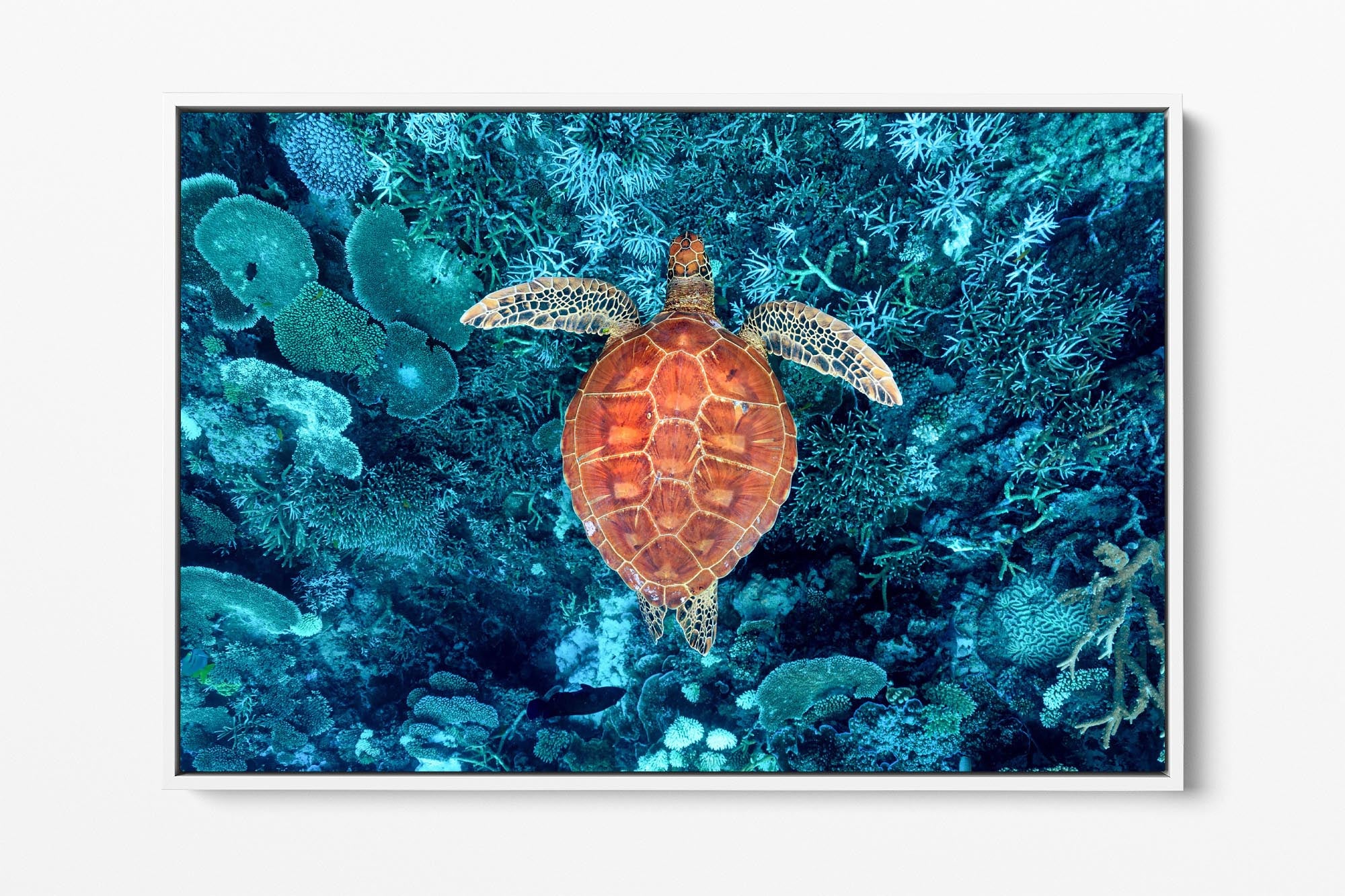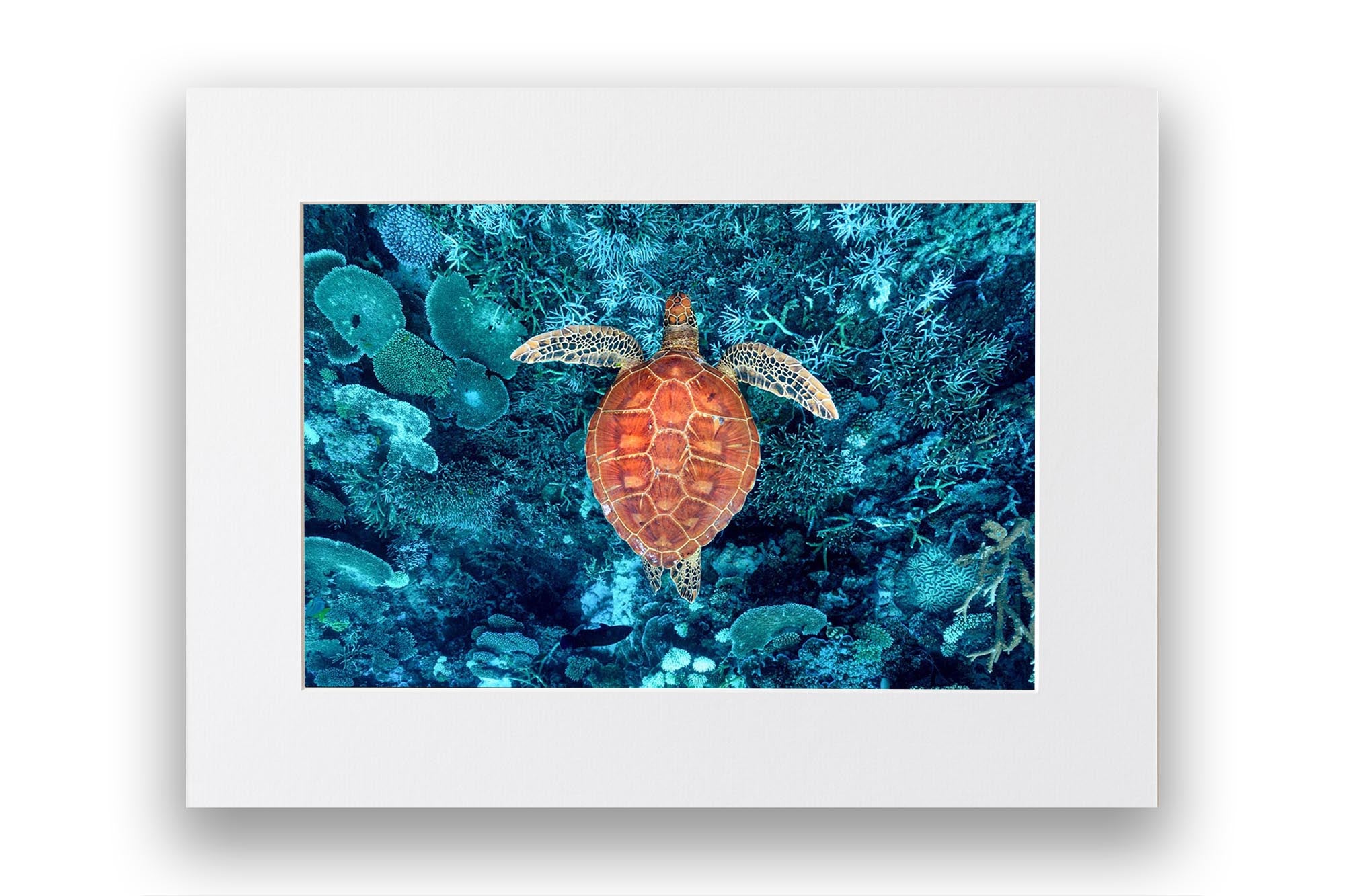 Endangered Green Sea Turtle (Chelonia mydas) Coral Glide Print – Lady Elliot Island, Southern Great Barrier Reef, Queensland