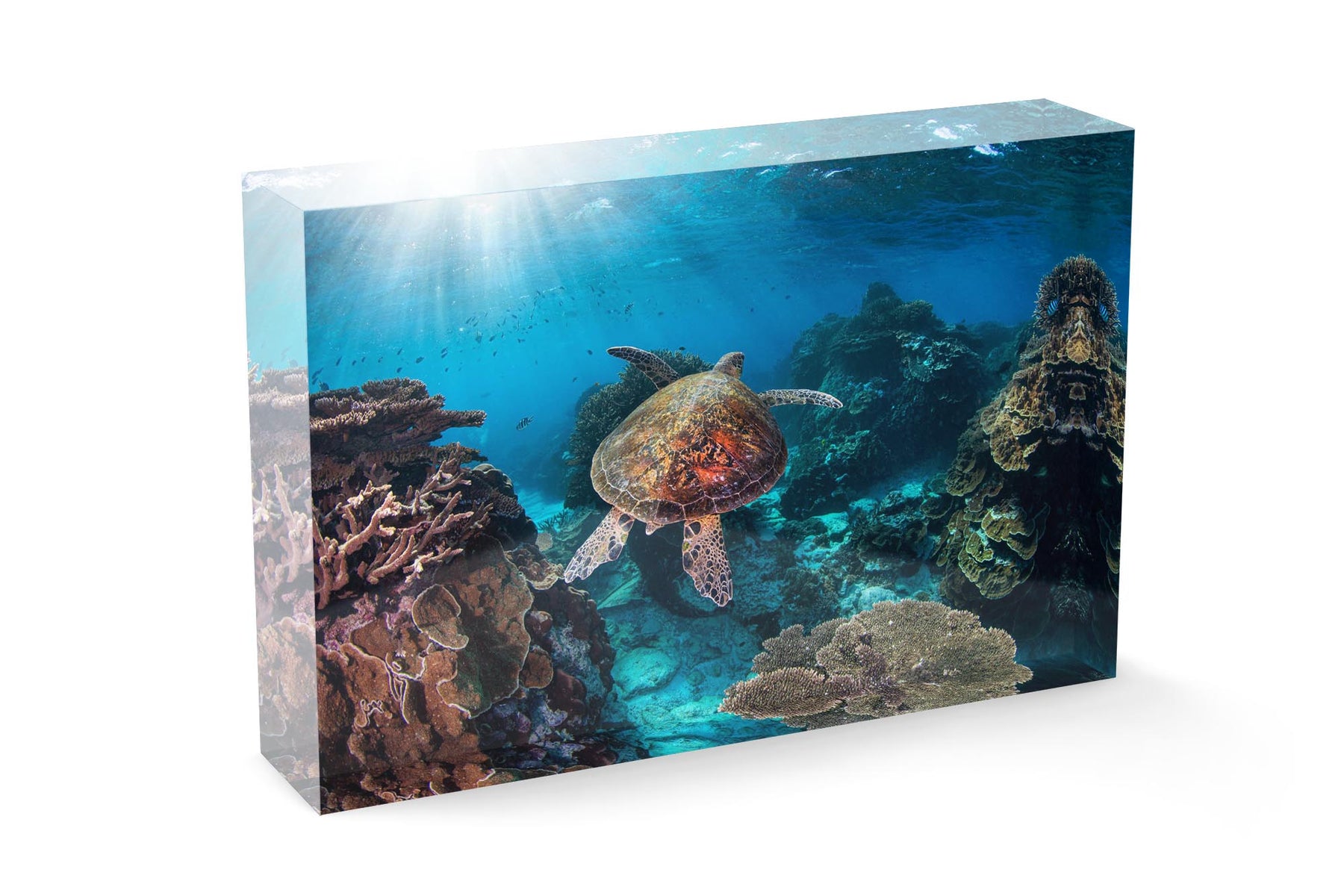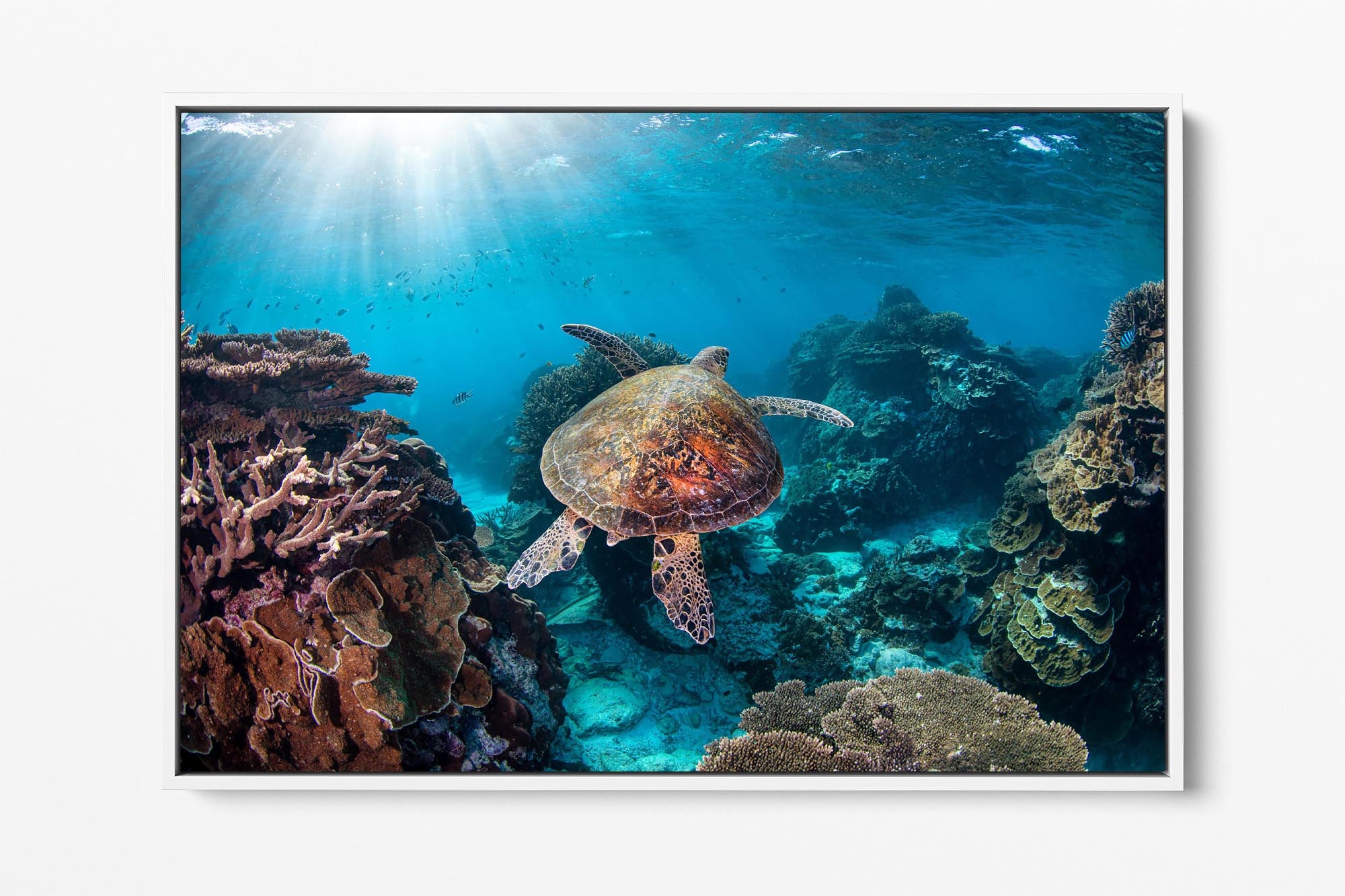 Green Sea Turtle Coral Gardens Print – Lady Elliot Island, Great Barrier Reef, Australia
