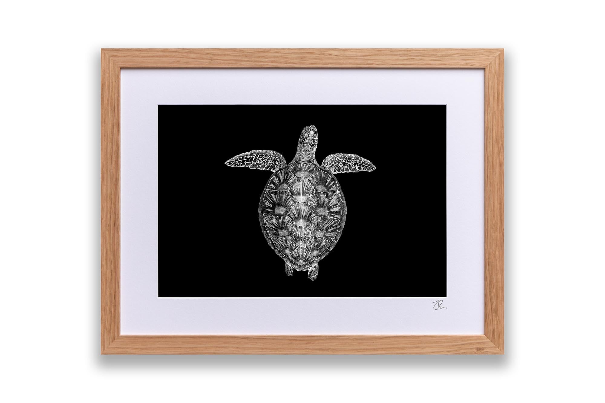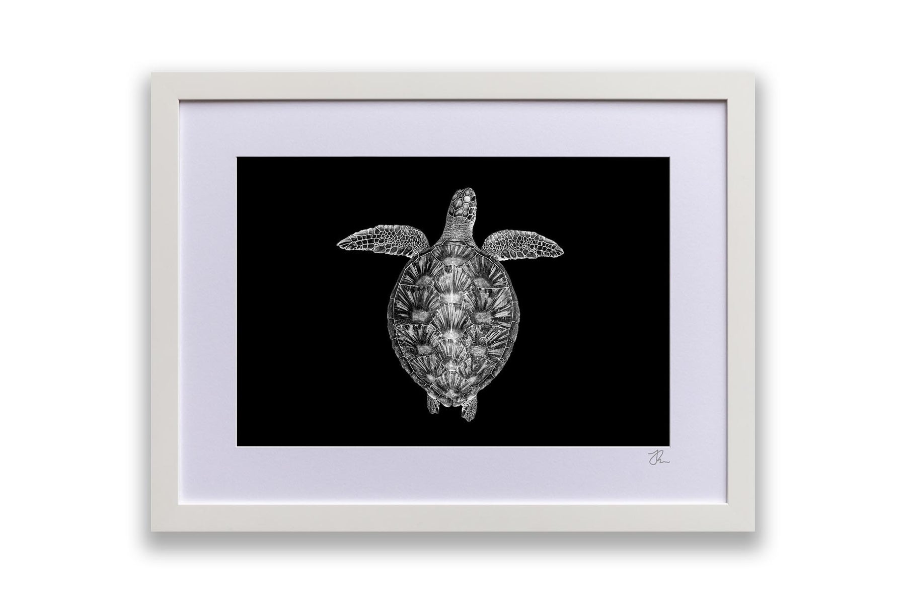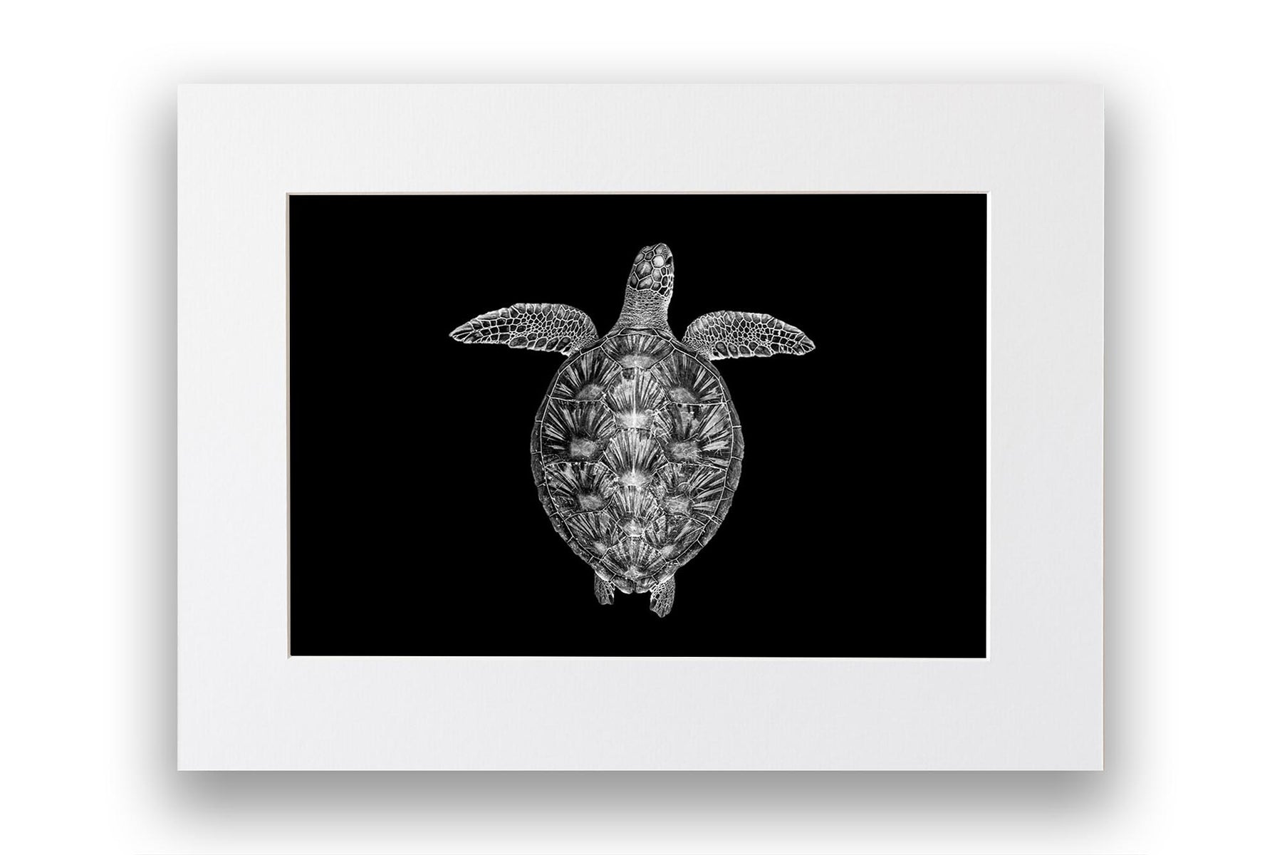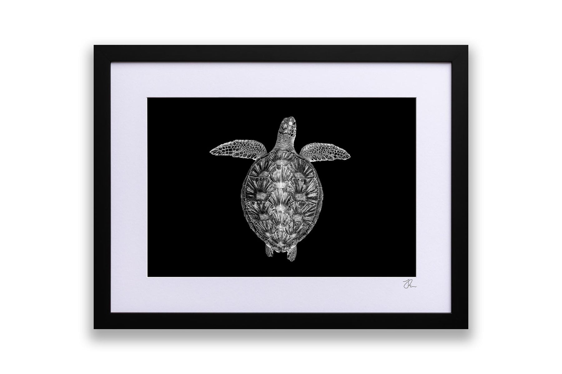 Monochrome Green Sea Turtle Shell Print – Lady Elliot Island, Southern Great Barrier Reef, Australia