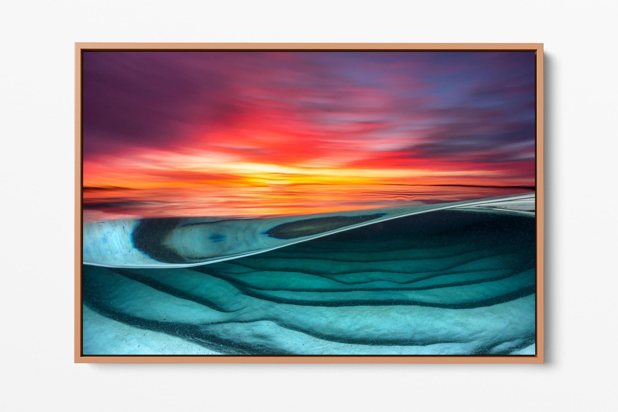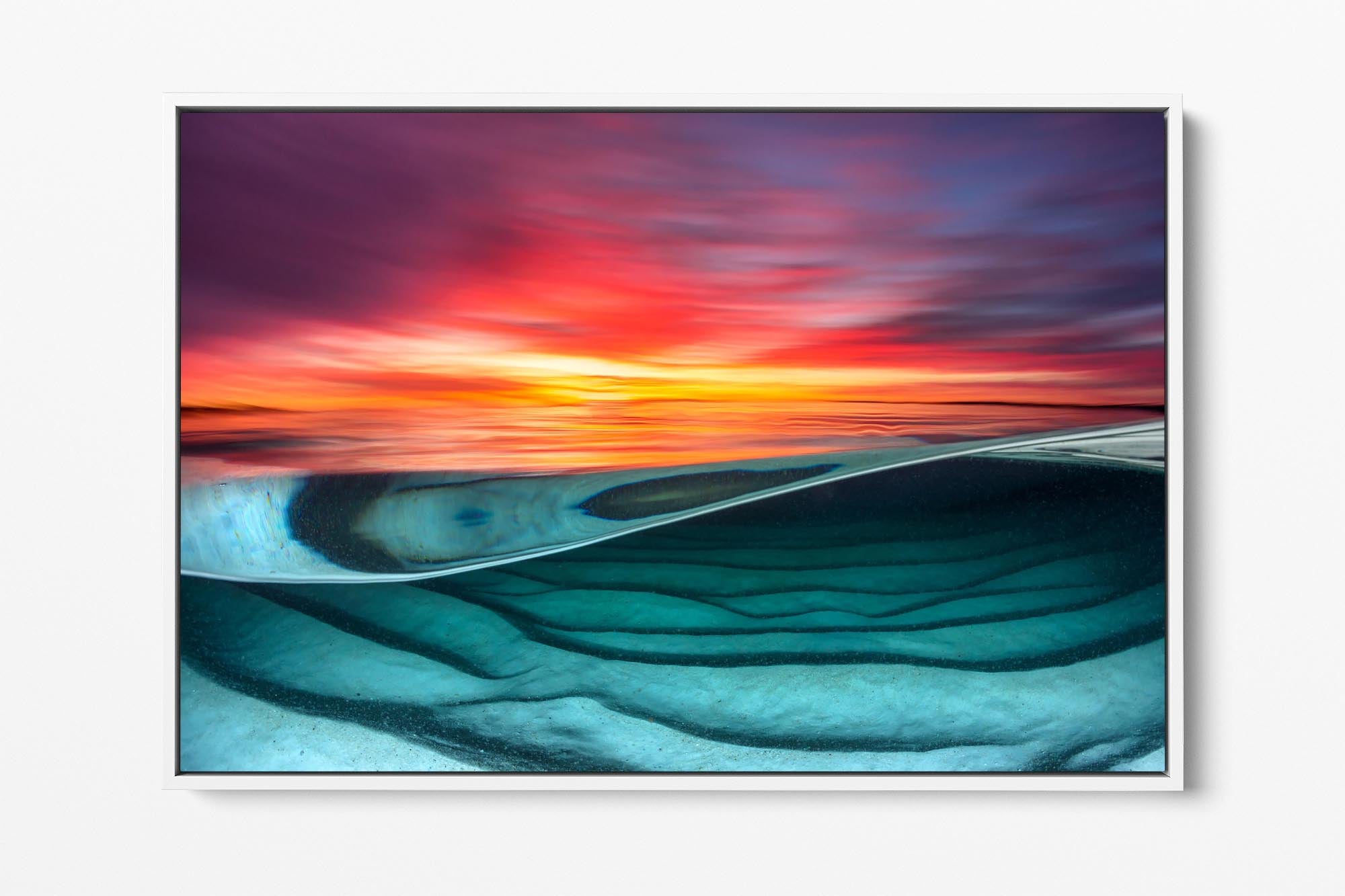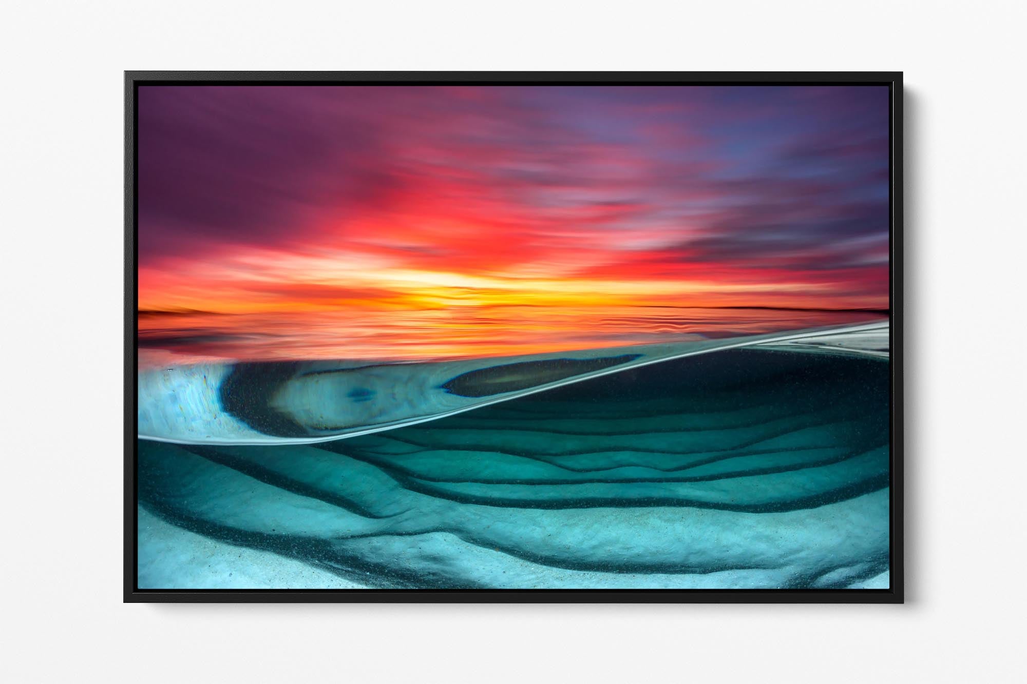 The fine art canvas come stretched around an internal timber frame however there is the option to add a float frame to the exterior of the fine art canvas. Float frames are available in white, black and Tasmanian oak and are a great way to add more depth and contrast to our fine art canvas range.