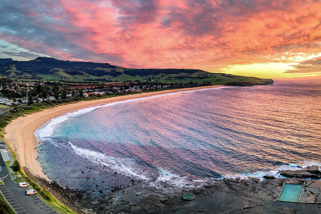 Aerial Sunrise Print | Werri Beach, Gerringong – South Coast NSW Drone Photography & Coastal Art