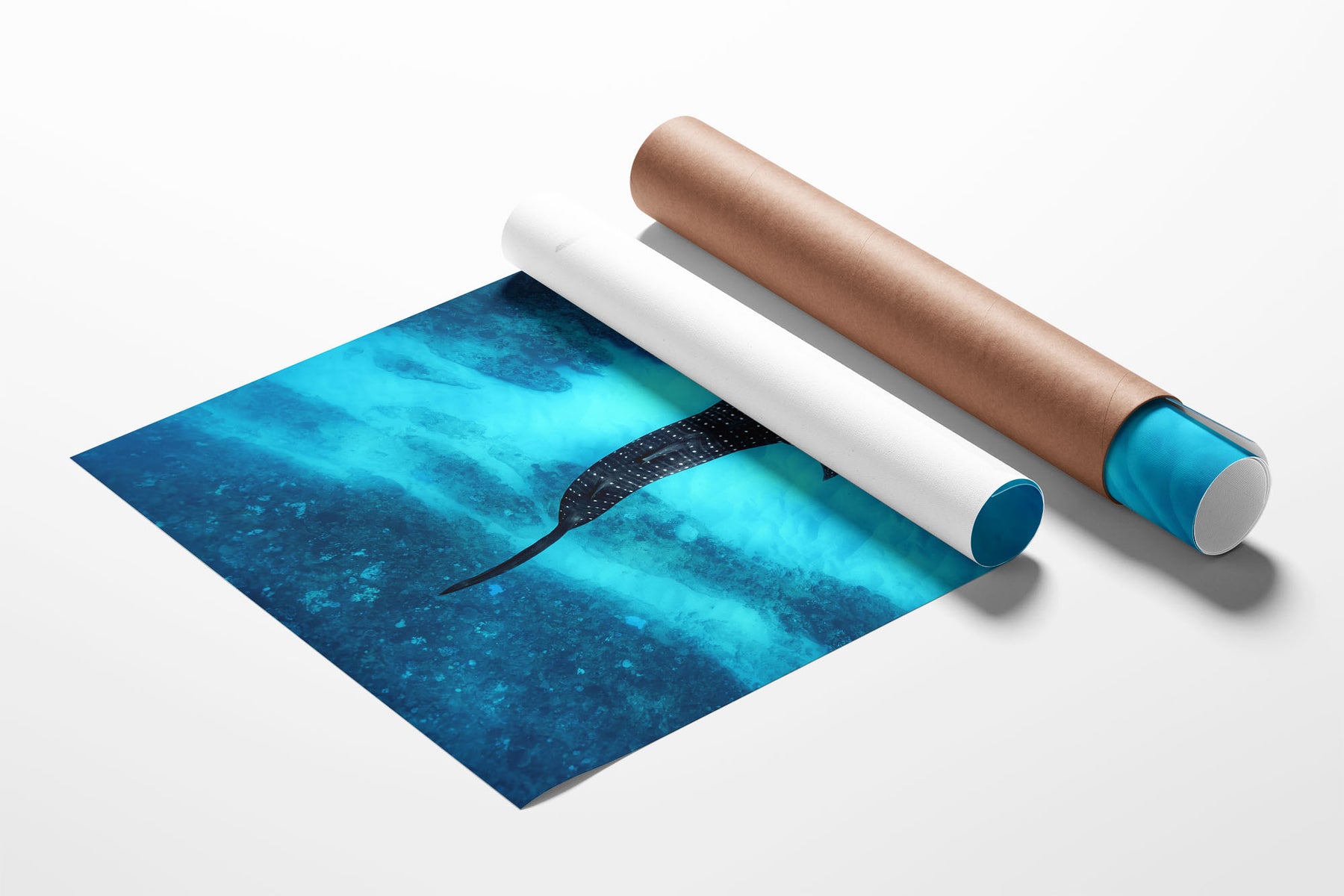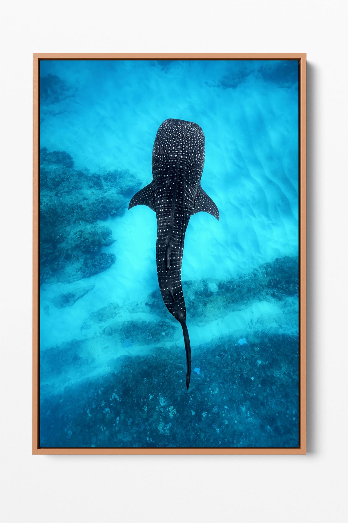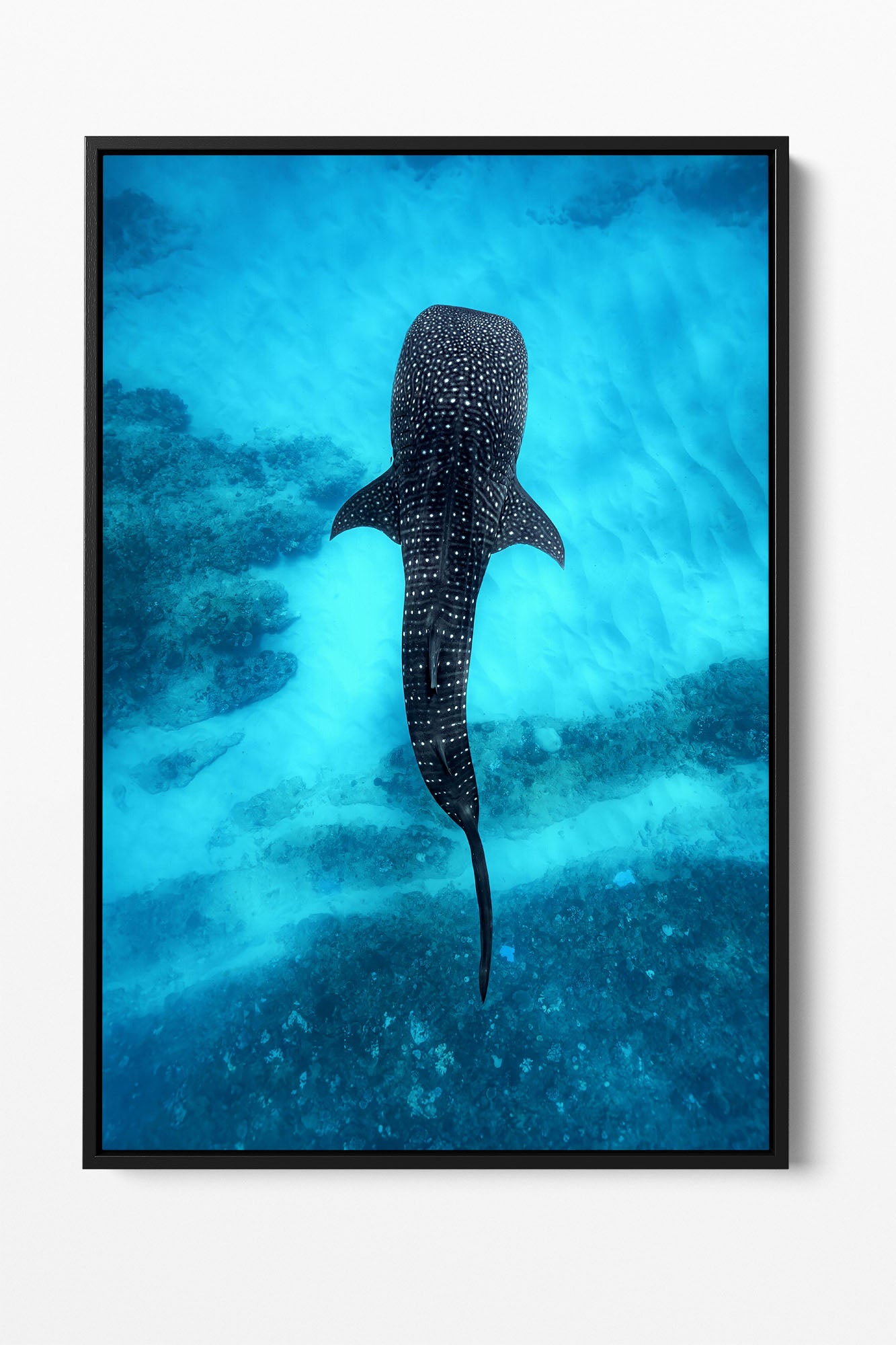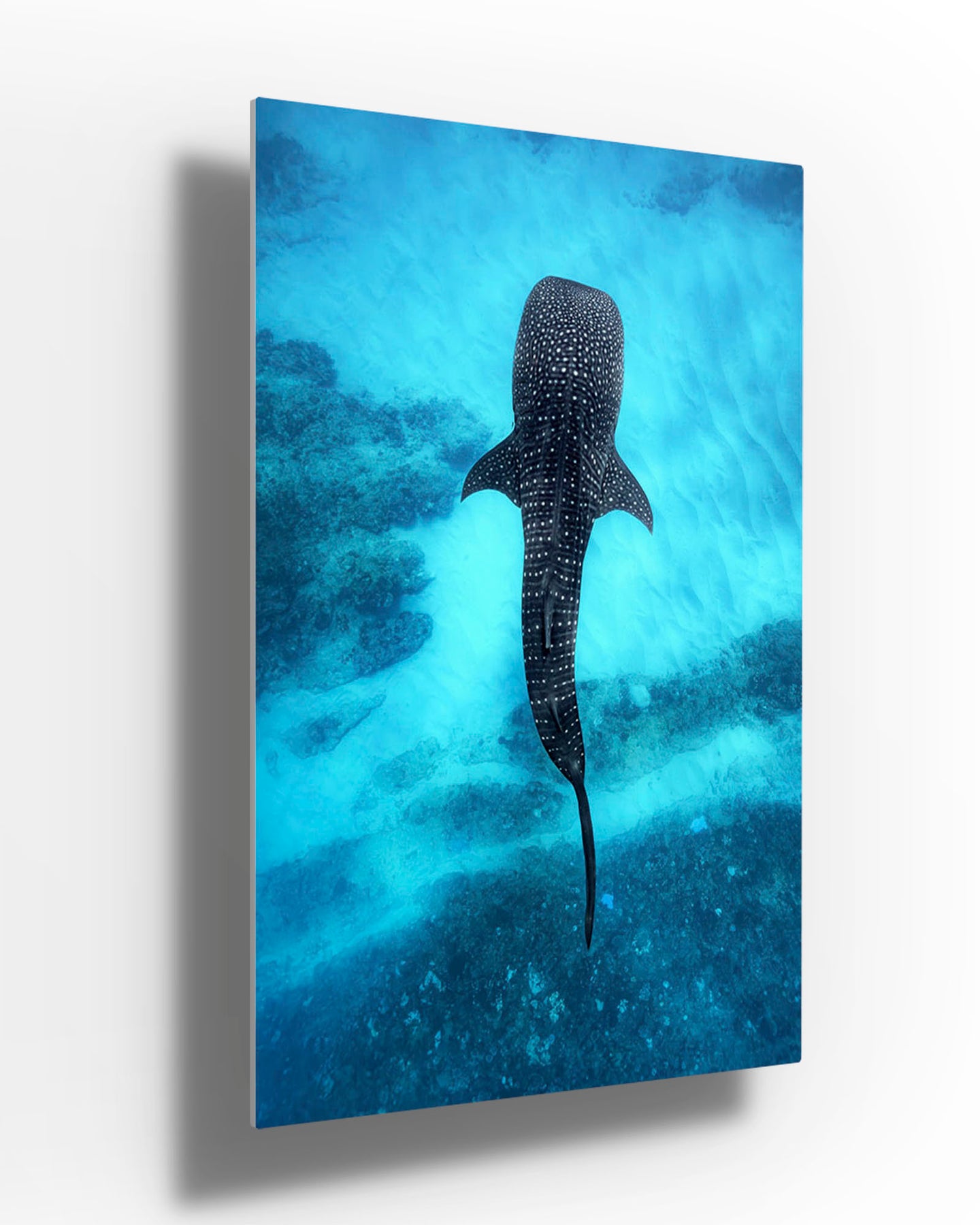 This majestic Whale Shark fine art photo print captures the awe-inspiring beauty of the world’s largest fish gliding gracefully over stunning coral reefs on the UNESCO-listed Ningaloo Reef, Western Australia. Shot in the crystal-clear waters near Exmouth and Coral Bay, this artwork embodies the serene power of these gentle giants in their natural habitat, offering a breathtaking glimpse into one of Australia’s most iconic marine ecosystems.